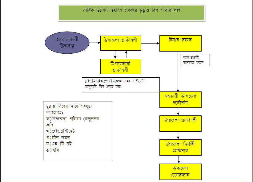 | ৩ | উপজেলা পরিষদ উন্নয়ন তহবিল কাজের বিল প্রাপ্তির ধাপ | দেখুন | |